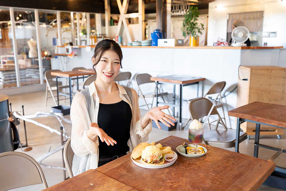 米沢牛100%のパティや地元老舗パン屋さんに特別注文をかけたイングリッシュマフィンなど、素材ひとつひとつにこだわったハンバーガー専門店。古民家を改装したおしゃれな店内と音楽を楽しむことができます。